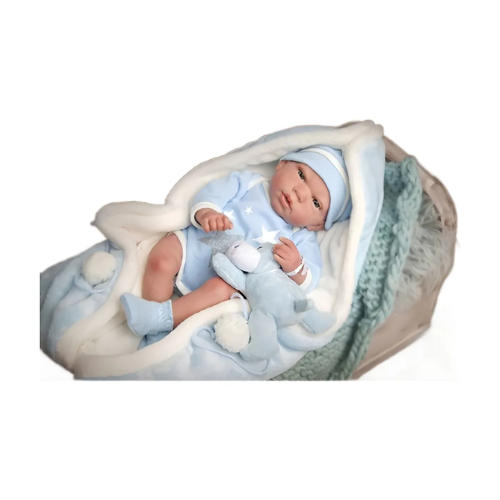 Bebé Reborn Carlos Precioso muñeco que viene con un conjunto a juego con su mantita y peluche.